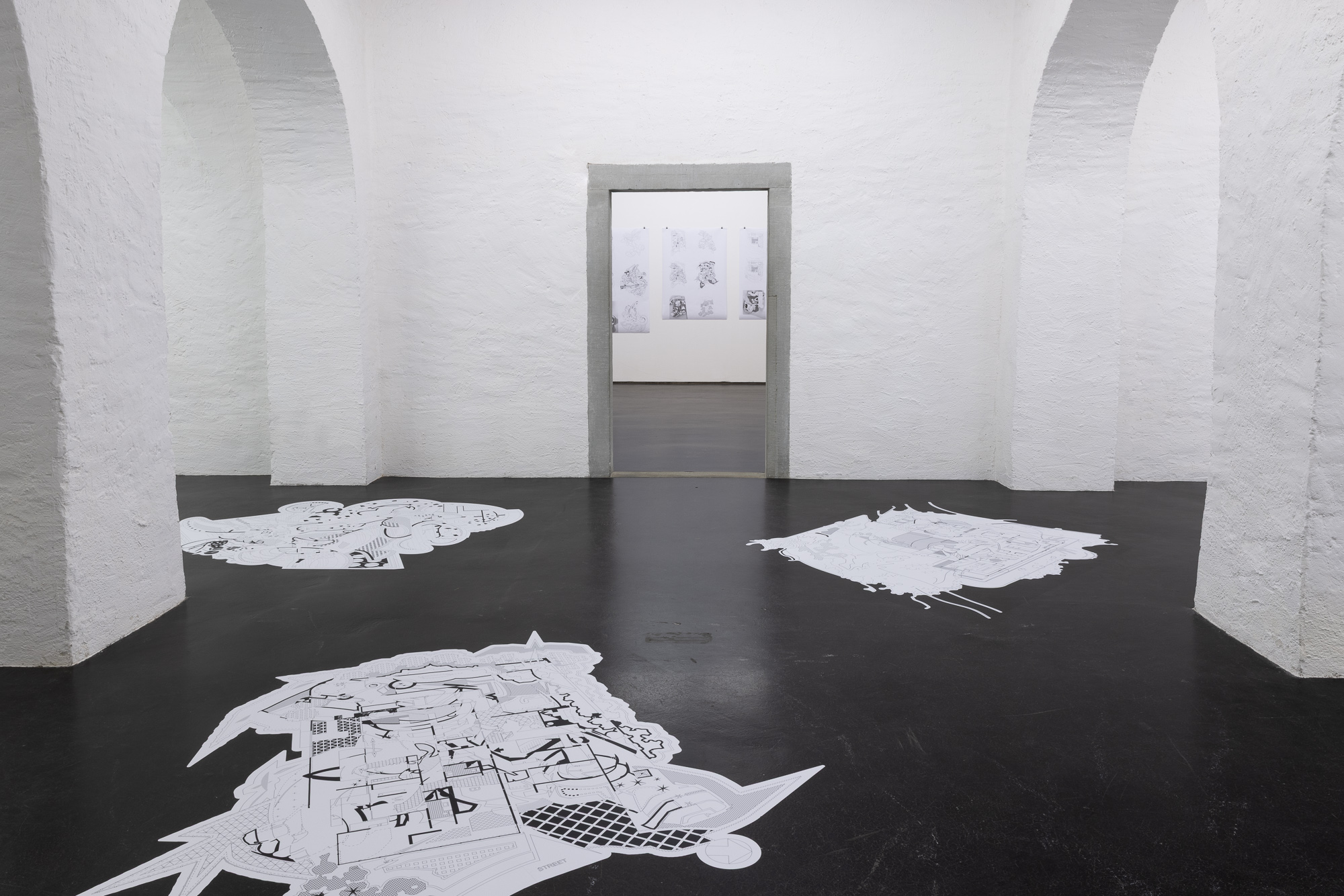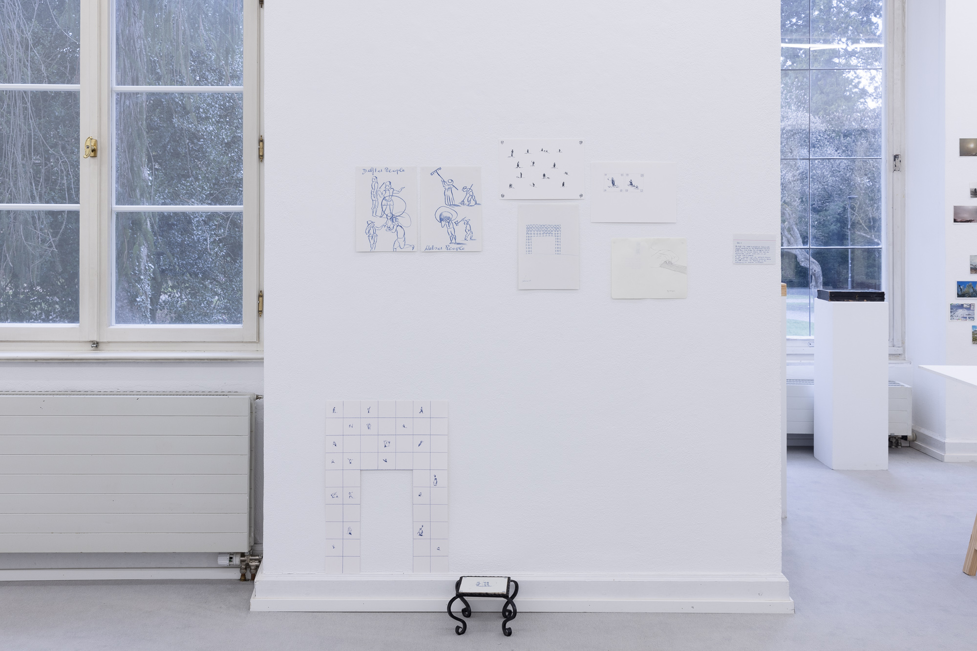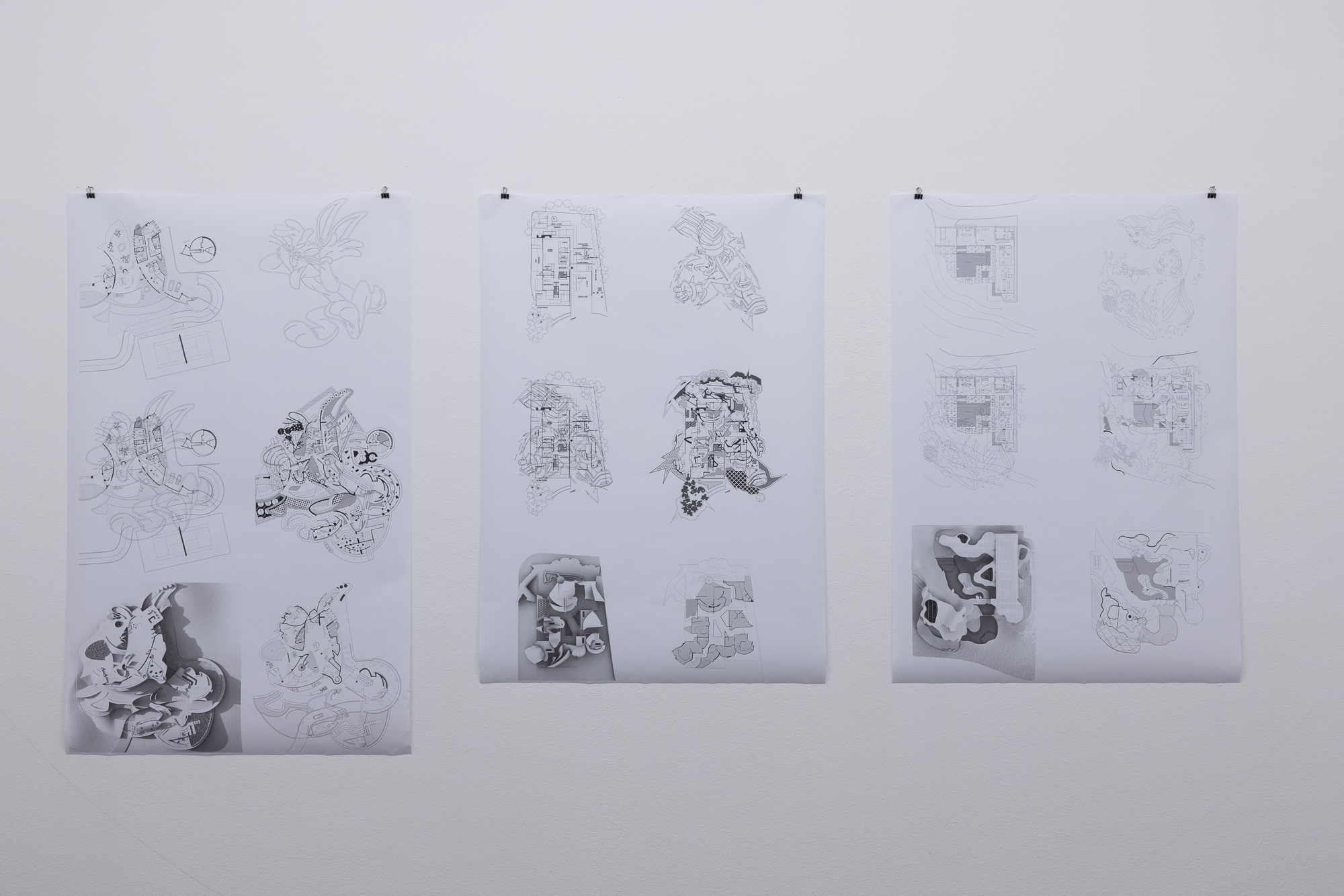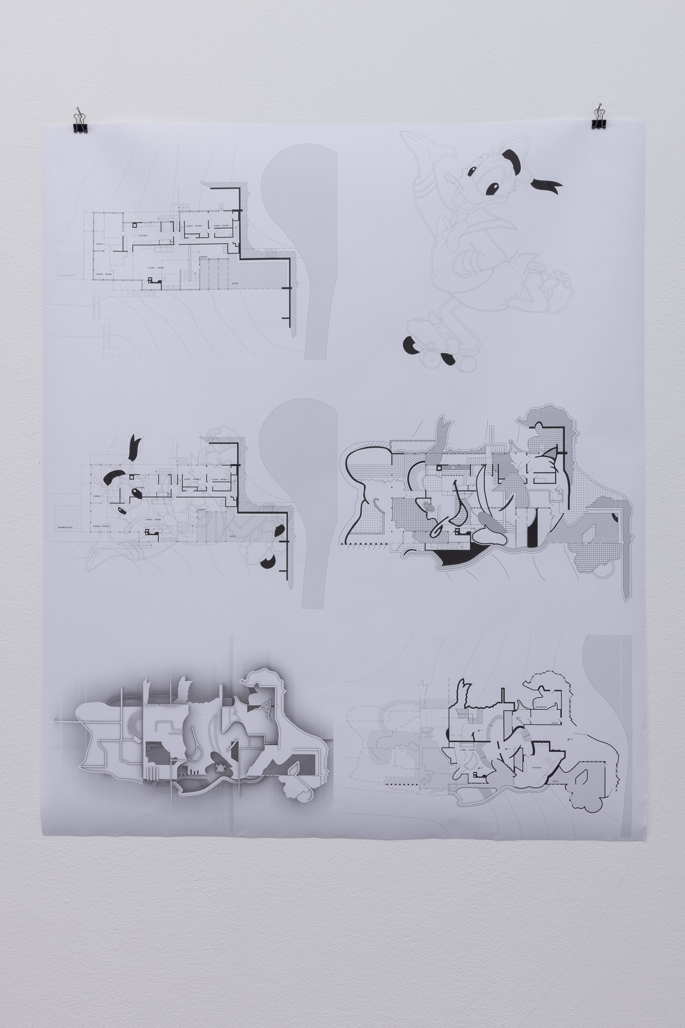 Indem die Ausstellung diese Bereiche miteinander in Beziehung setzt, hebt sie ihre gemeinsame semiotische Bedingung hervor. Sowohl architektonische Grundrisse als auch populäre Figuren fungieren als zweidimensionale Zeichensysteme, die durch Konventionen der Lesbarkeit bestimmt sind. Durch Kompositions- und Überlagerungsprozesse entstehen hybride Zeichnungen, die festgelegte Bedeutungen in Frage stellen. So kann ein Plan als Figur erscheinen und eine Figur kann auf eine räumliche Organisation hindeuten.