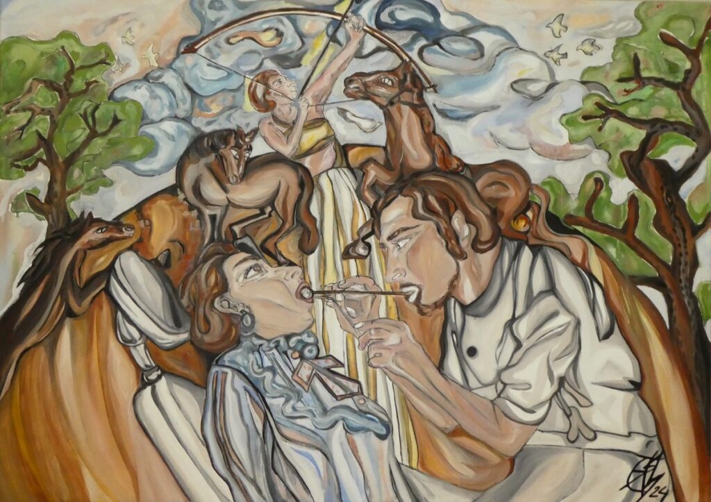 Mich interessieren die Grenzen der Malerei, Fragen nach Freiheit und Kontrolle und wie Kreativität entsteht. Zwischen Regel und Rebellion untersuche ich, wie Identität sich formt und verändert. Träume und Fantasie begreife ich als Gegengewicht zu normativen Erwartungen, als Kraftquellen künstlerischer Identität.