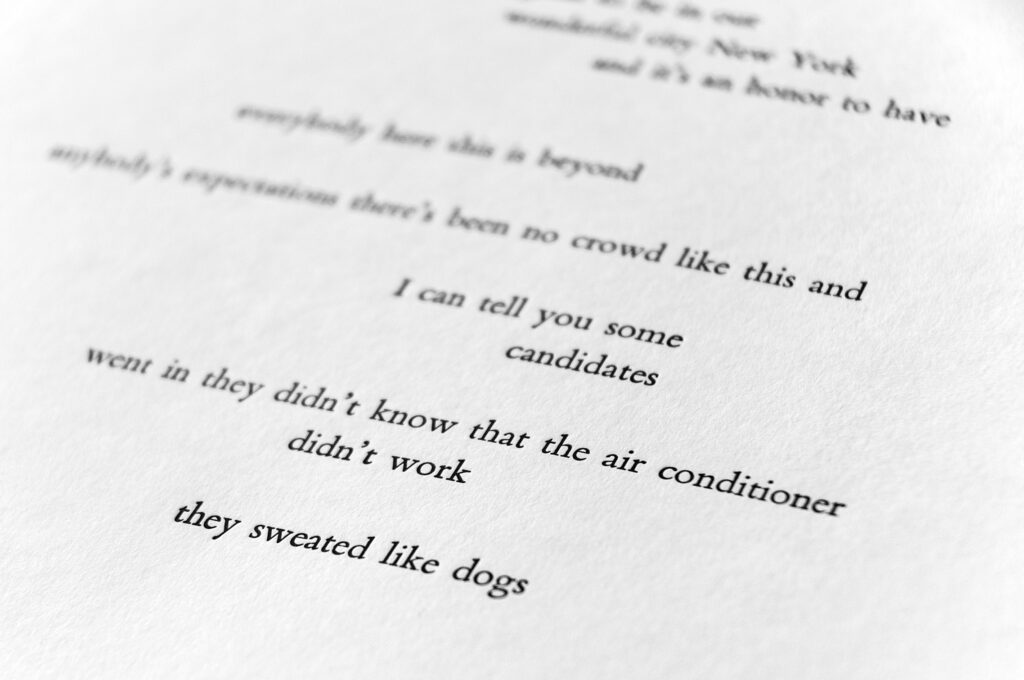 Viths Arbeit verhandelt Abwesenheit als einen durch politische Systeme, Verlust und fragmentarische Erinnerung hervorgebrachten Zustand. In textilen und digitalen Stillleben erscheinen Objekte als surrogative Träger von Präsenz, während Räume als Orte des Wartens und der Verzögerung erfahrbar werden. Sprache tritt in Form administrativer und poetischer Fragmente auf und fungiert zugleich als strukturierendes wiedestabilisierendes Element. Im Zusammenspiel von Materialität, Bild und Text entsteht eine Verschiebung des Alltäglichen, in der sich Intimität, Kontrolle und Entzug überlagern.
